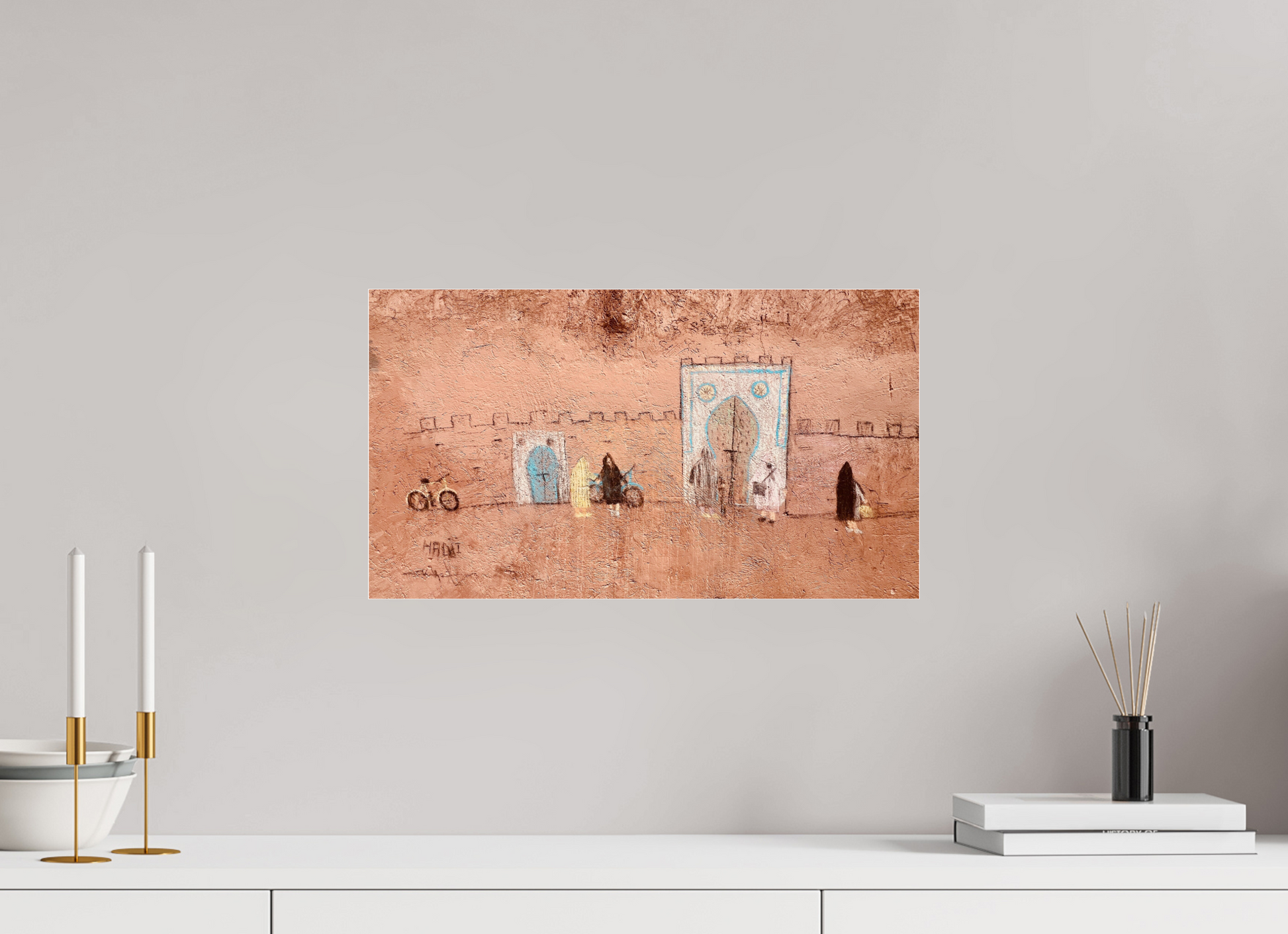 Dieser Kunstdruck verbindet künstlerische Authentizität mit hochwertiger Präsentation – perfekt, um ein Stück marokkanischer Kultur und urbaner Ästhetik in deinen Raum zu bringen. Ein ausdrucksstarkes Statement-Piece für Sammler zeitgenössischer Fotoarbeiten und Liebhaber charaktervoller Wandkunst.